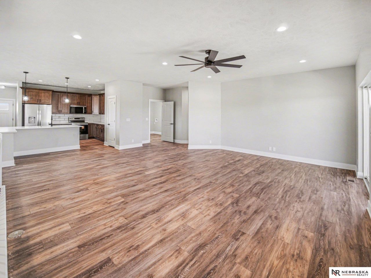 This new construction home is nearing completion and offers over 3,500 square feet of finished living space. Designed with comfort and functionality in mind, it features five bedrooms, three bathrooms, and a beautiful electric fireplace as a focal point of the main living area. The spacious open floor plan provides seamless flow for everyday living and entertaining. The finished walkout basement includes a very large family room, creating the perfect space for gatherings, movie nights, or game days. Enjoy added privacy with no backyard neighbors, plus a covered deck and covered patio that extend your living space outdoors. This all-electric home combines modern efficiency with generous living space inside and out.